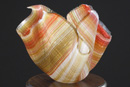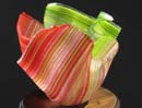 This series is composed of 1 mm strands of glass. (There are anywhere from1800 to 3700 strands in one piece depending on the number of layers used.) These strands are placed on a kiln shelf in layers at 90 degrees to each other. This makes the resulting piece very strong! I make great use of blending colors within a layer and from one layer to another which is a signature of my work.